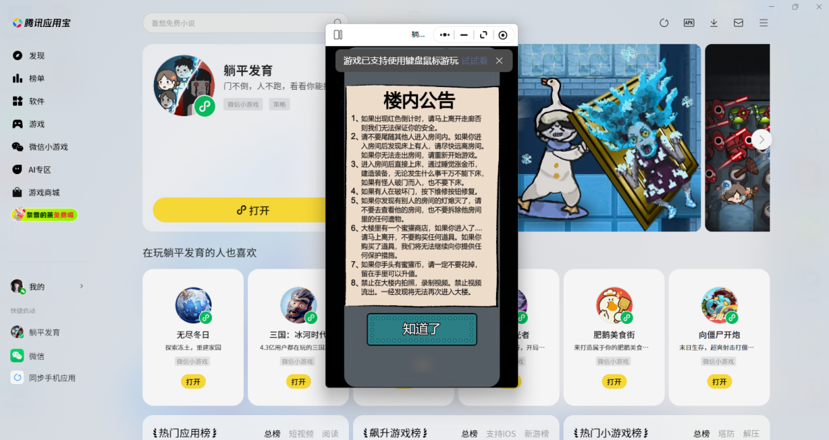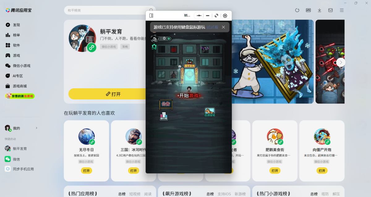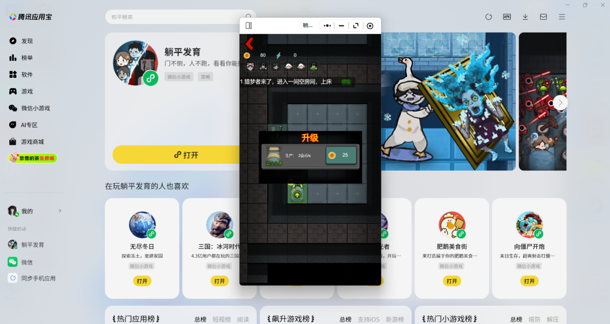 第三步:登录后直接拉起【躺平发育】微信小游戏,就可以畅玩了