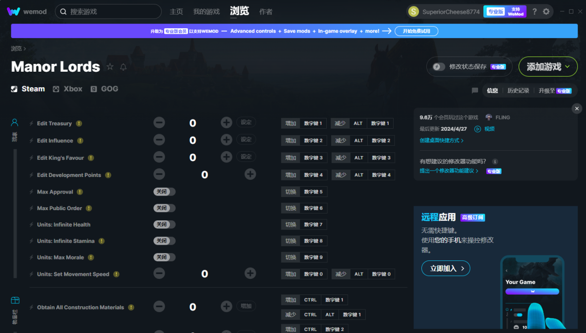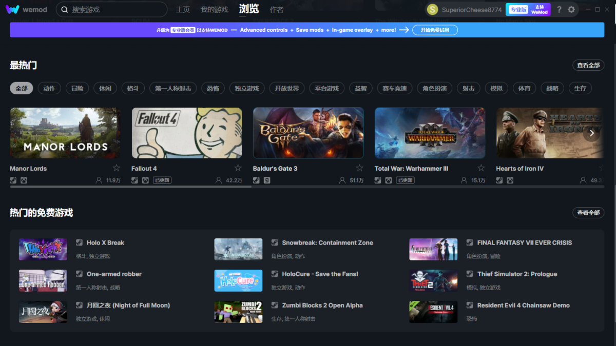 WeMod是一款PC单机游戏修改程序,修改器,Mods以及更多,全部都集成在WeMod程序中,包括修改状态保存、APP遥控、自定义修改。WeMod修改器支持超过*3,000+*单机游戏,WeMod 让修改器作者与百万玩家分享他们的修改器模组。