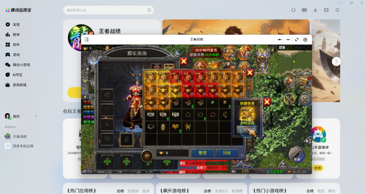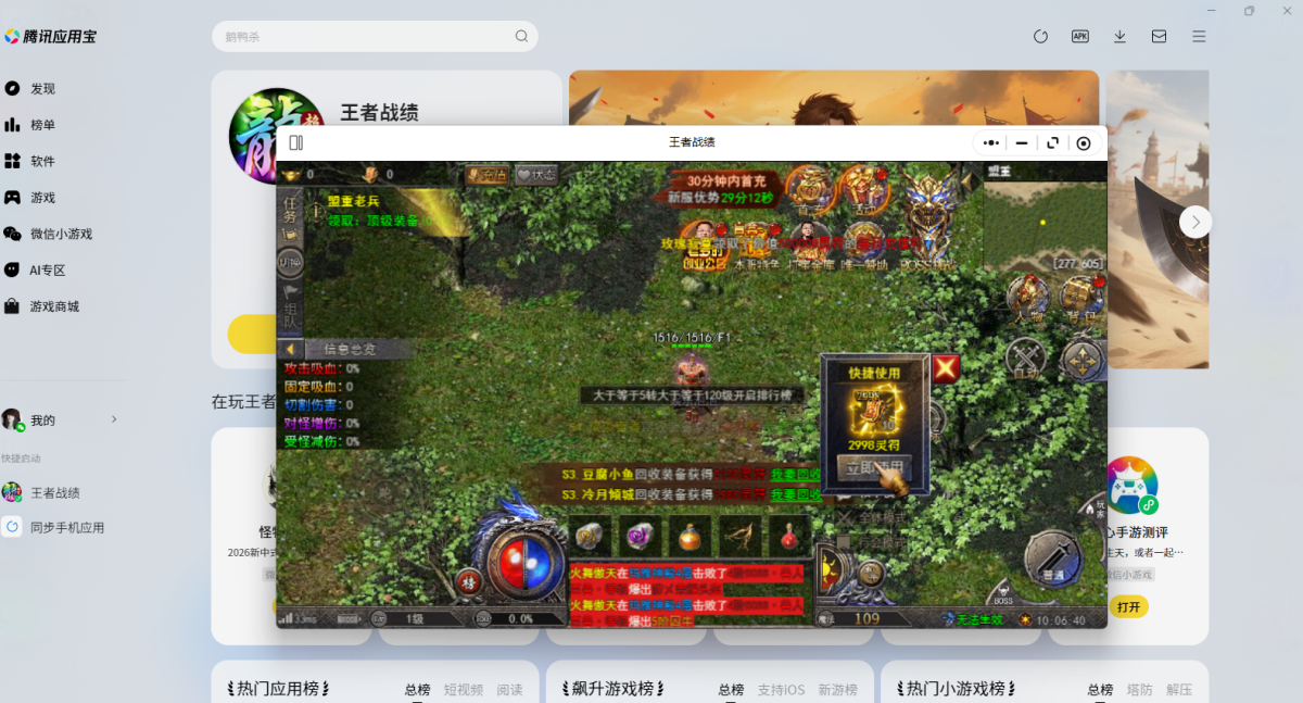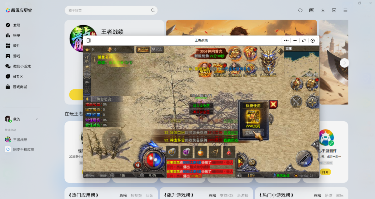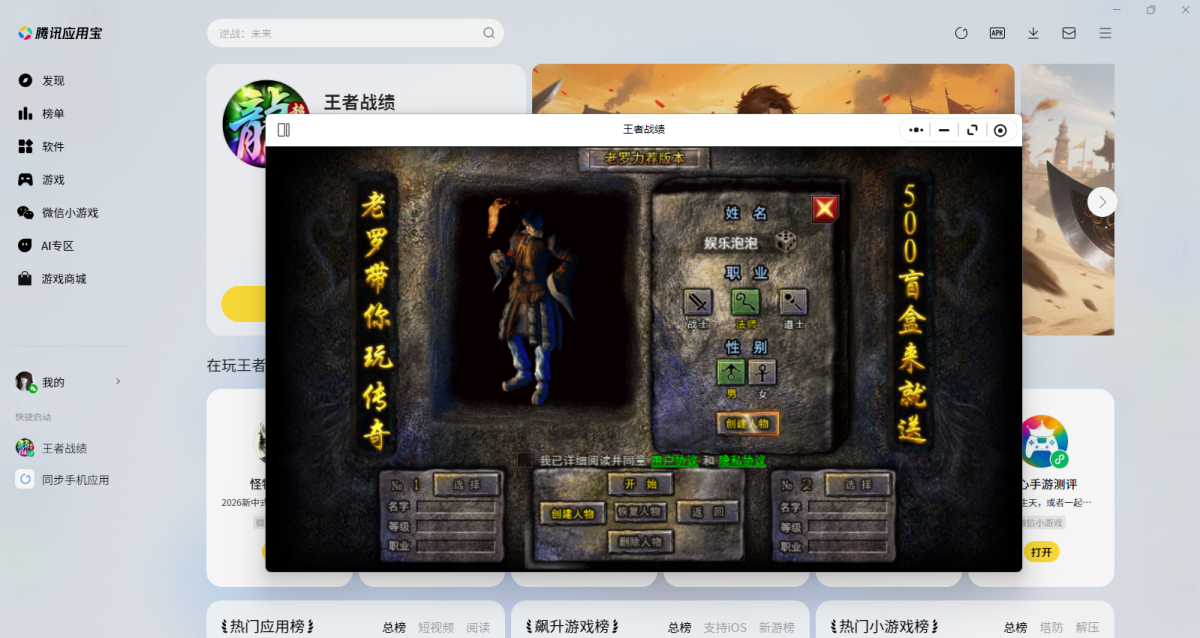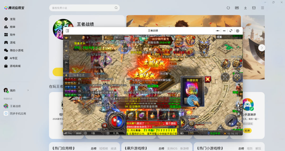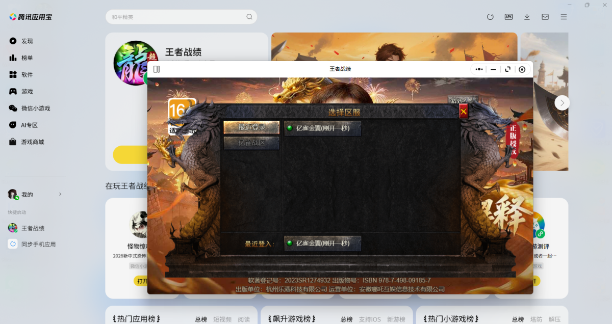 第二步:应用宝电脑版打开后会直接调起游戏,选择微信扫码或其他方式登录账号