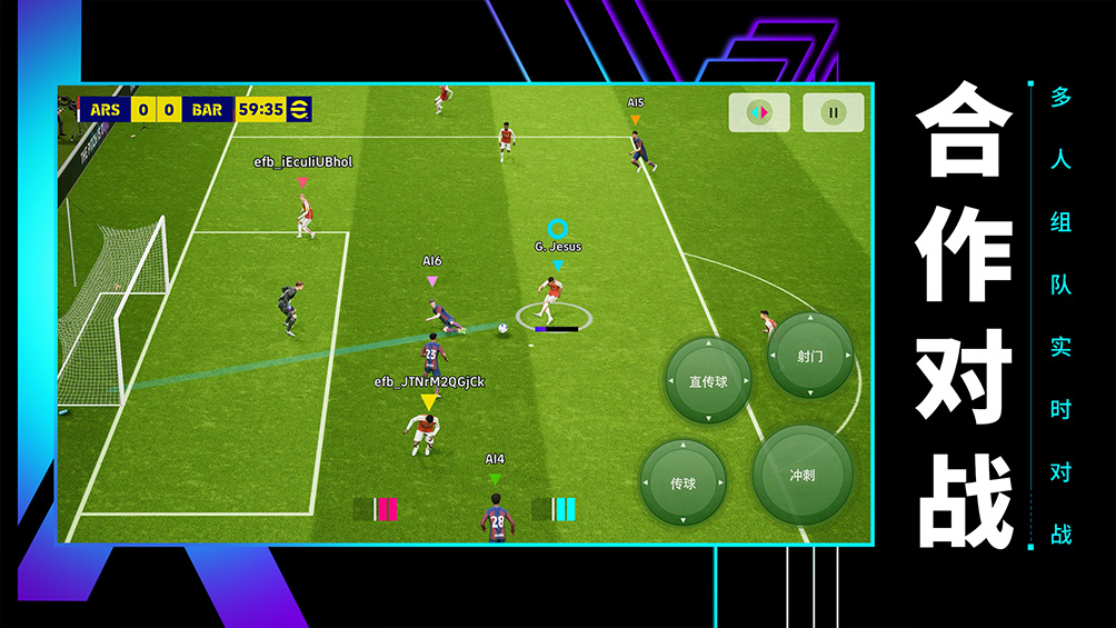 实况足球启动!操控升级、画质提升,体验酣畅淋漓的真实足球游戏!《实况足球》由KONAMI足球游戏《eFootball》主机原班制作团队打造,搭载主机版同款虚幻4引擎,为你提供高解析度的比赛画质和60 帧流畅对战体验;多元战术,智能AI,真实物理碰撞与受力反馈——这就是指尖上的真实绿茵赛场,这就是《实况足球》!