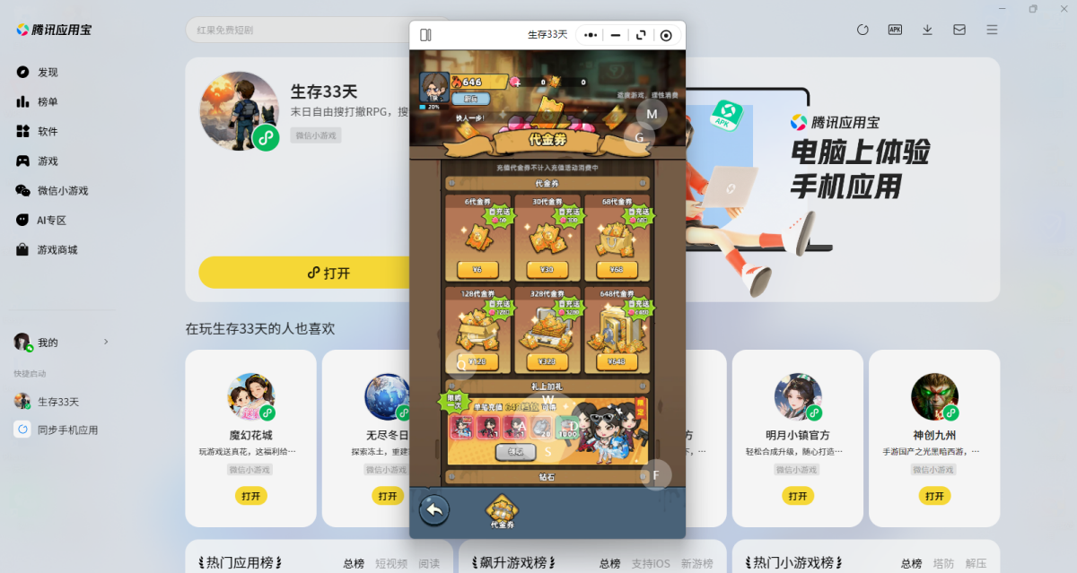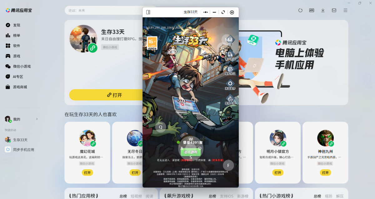 第三步:登录后直接拉起【生存33天】微信小游戏,就可以畅玩了