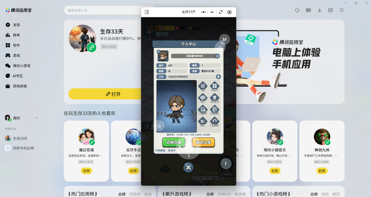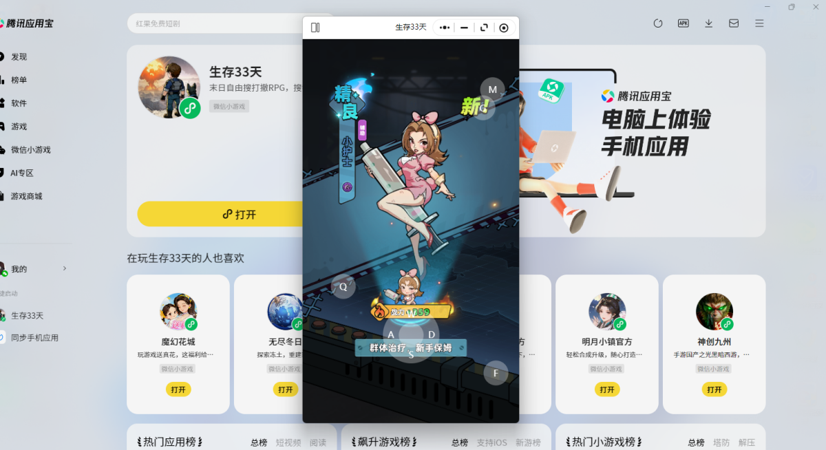 第二步:应用宝电脑版打开后会直接调起游戏,选择微信扫码或其他方式登录账号