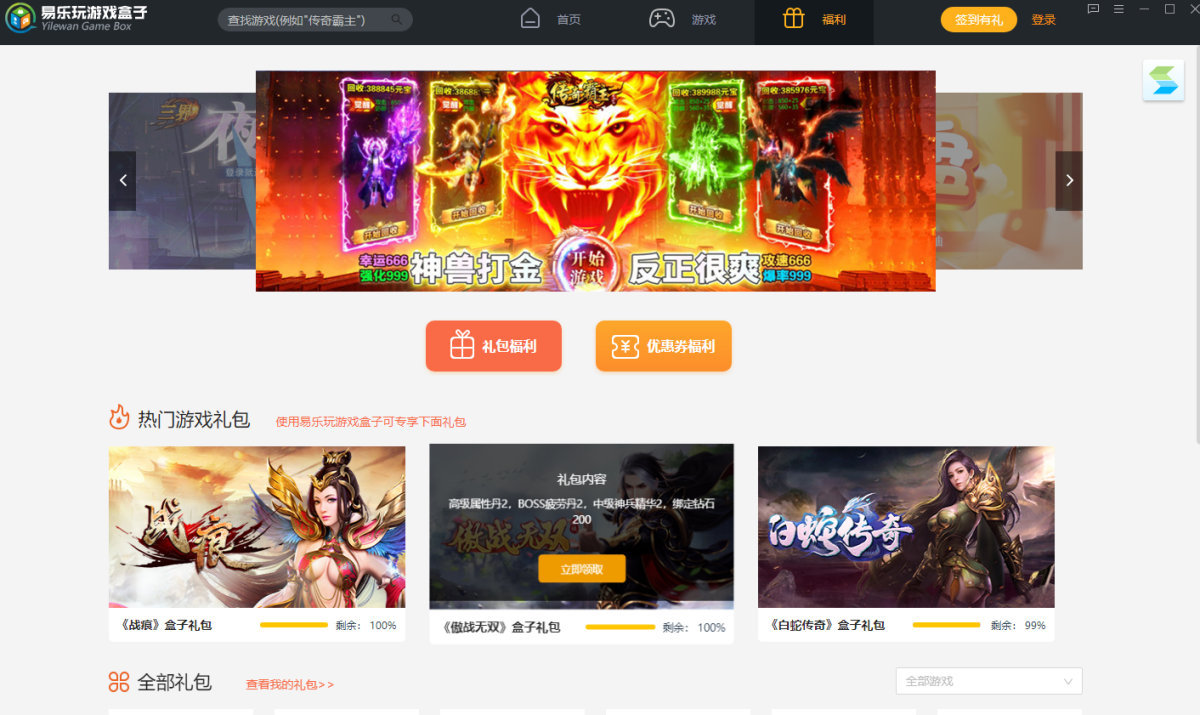 易乐玩游戏盒子是盛天网络旗下的游戏运营平台易乐玩的客户端产品,一直为广大玩家提供热门、好玩的免费游戏及超值游戏礼包福利。致力于打造以多种运营模式、多种游戏形式相结合的多元化网络娱乐平台。