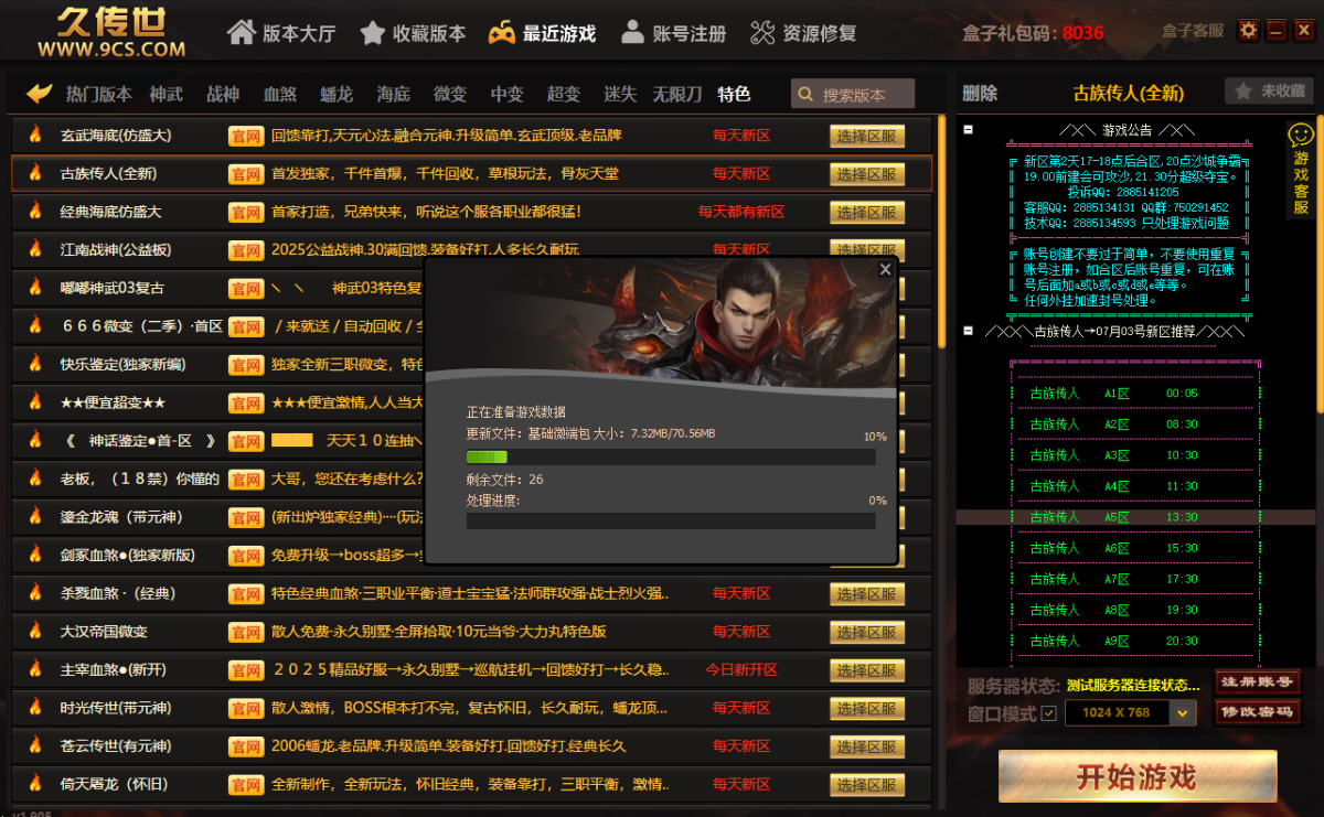 9cs传世盒子,强大的功能让玩家体验更畅快,优选全新品质好服,玩家找正版品牌传世服更轻松,盒子专属福利天天领,游戏安全有保障!