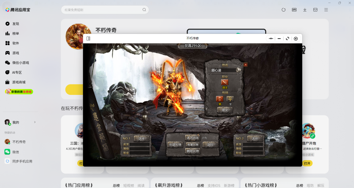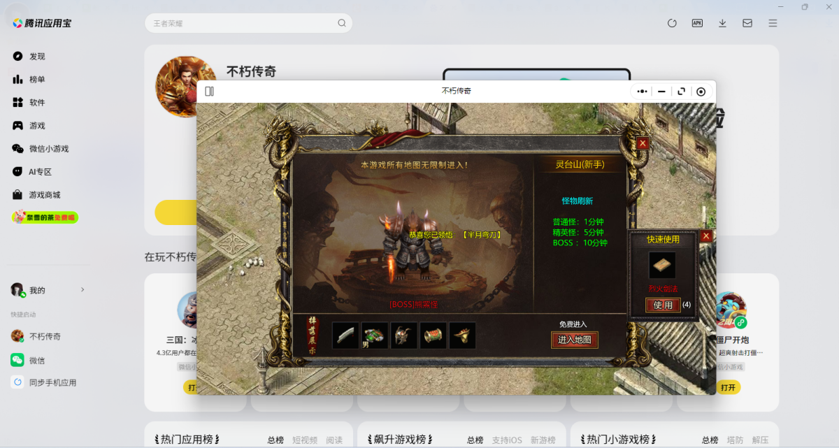 第三步:登录后直接拉起【不朽传奇】微信小游戏,就可以畅玩了