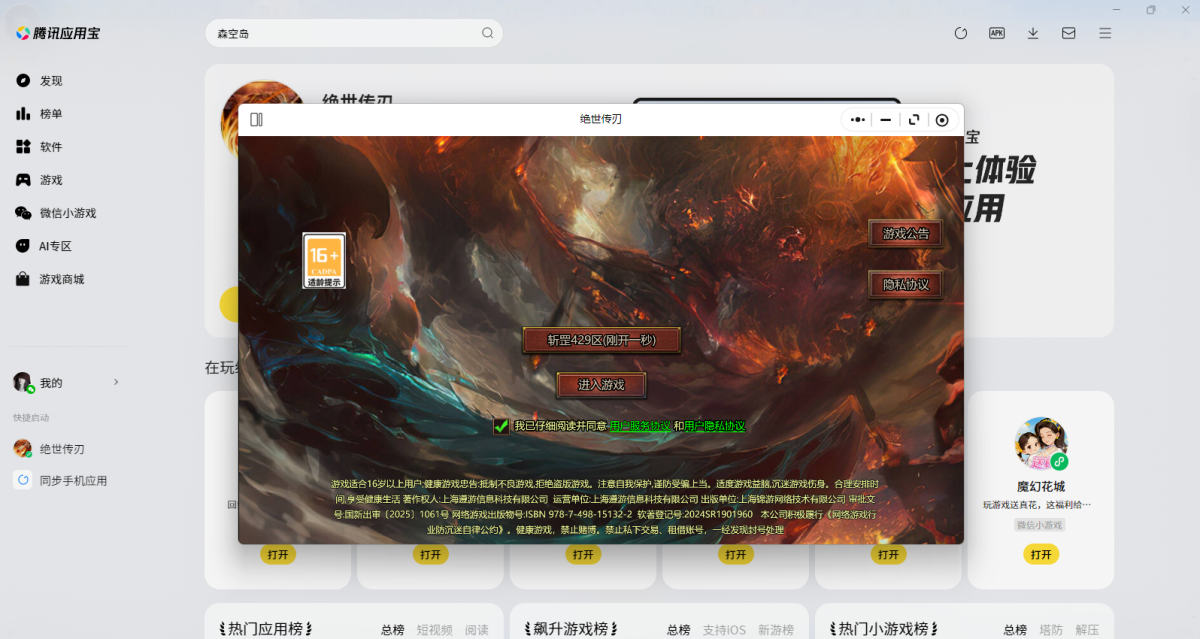 第二步:应用宝电脑版打开后会直接调起游戏,选择微信扫码或其他方式登录账号