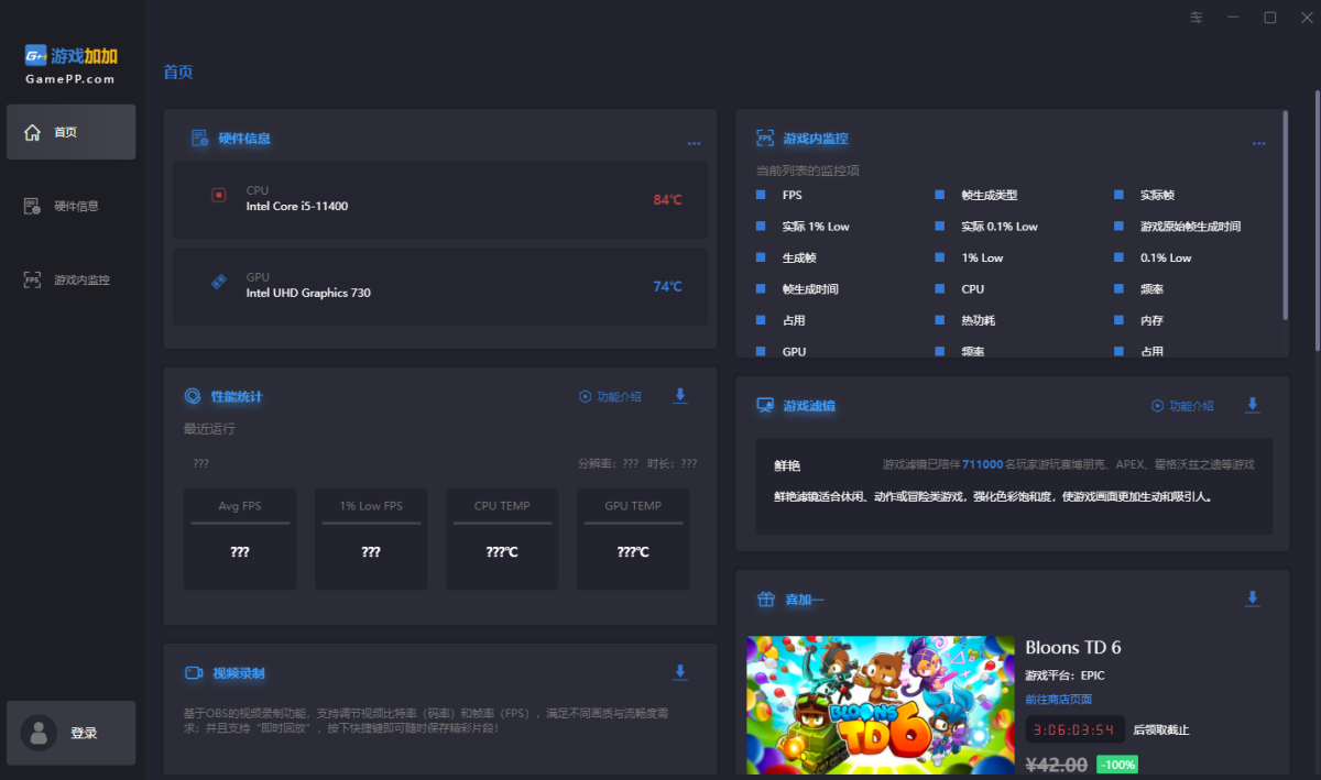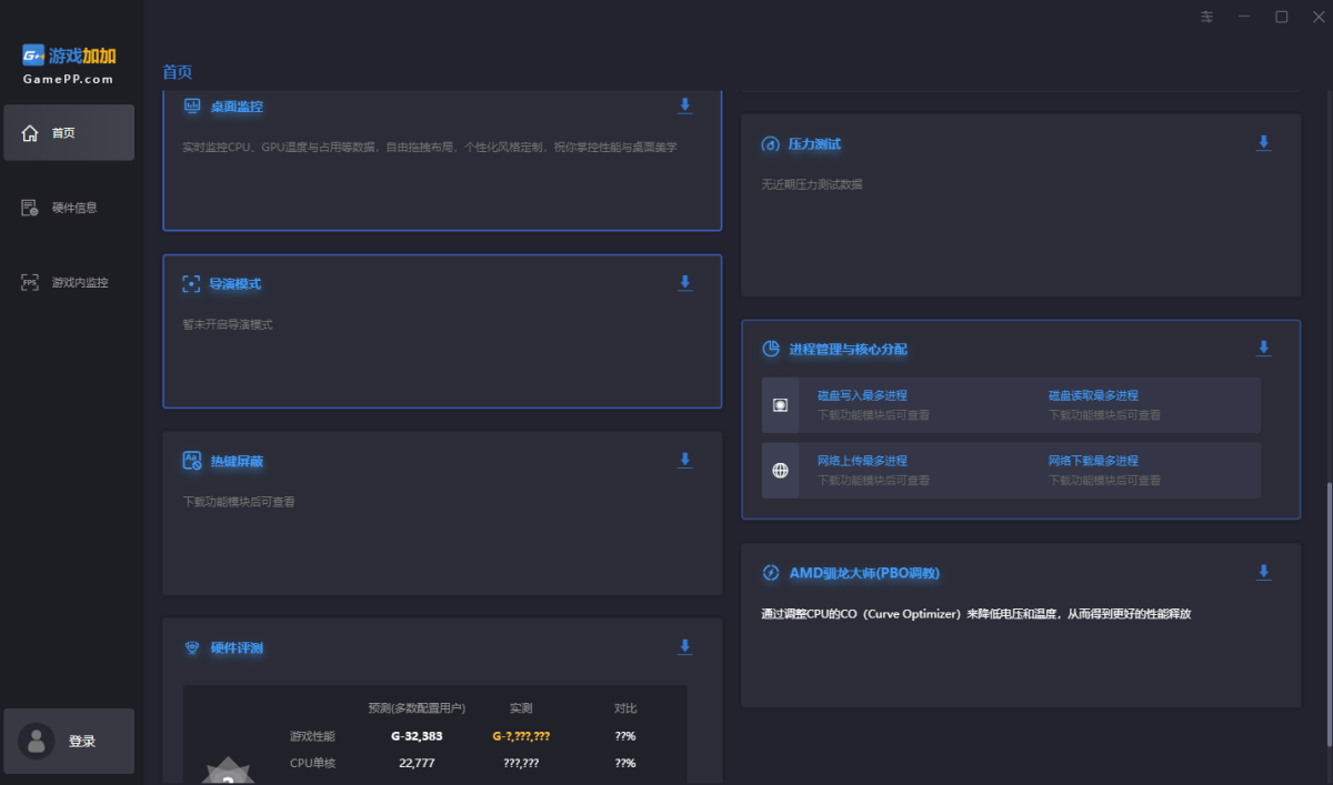 游戏加加轻量版是一款专业电竞游戏工具,专注于硬件监控、游戏优化、游戏滤镜、网络加速等功能;用户能通过软件提供的游戏跑分测试电脑配置在运行游戏的流畅度,使用游戏优化提高硬件性能消耗,打开硬件监控实时监测硬件性能表现,使用游戏滤镜提升游戏画质体验,通过网络加速降低游戏网络延迟提升游戏体验。同时针对用户需求提供了游戏的专用工具等。并且该软件还集成了录像截屏、网盘同传等功能。是一款通用性极强的电竞游戏用户必备软件。