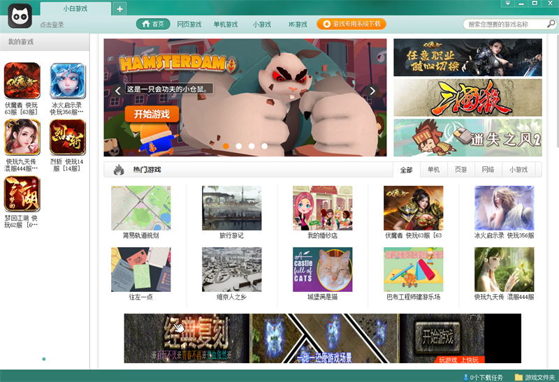 小白游戏即点即玩,绿色快捷,自动更新,大大降低了玩家对大型客户端游戏下载和使用的门槛。小白游戏首次点击时自动进行高速加载,加载完成即可进入游戏,游戏性能将与标准安装版本完全一样。