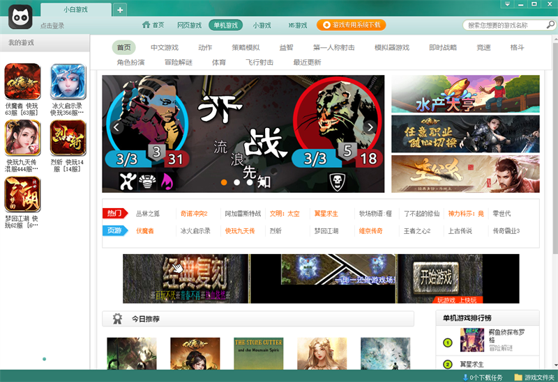 2、一键安装 简单省事:只需轻松一点,游戏大厅便可实现游戏的下载、安装、运行,减少用户麻烦,节省玩家时间