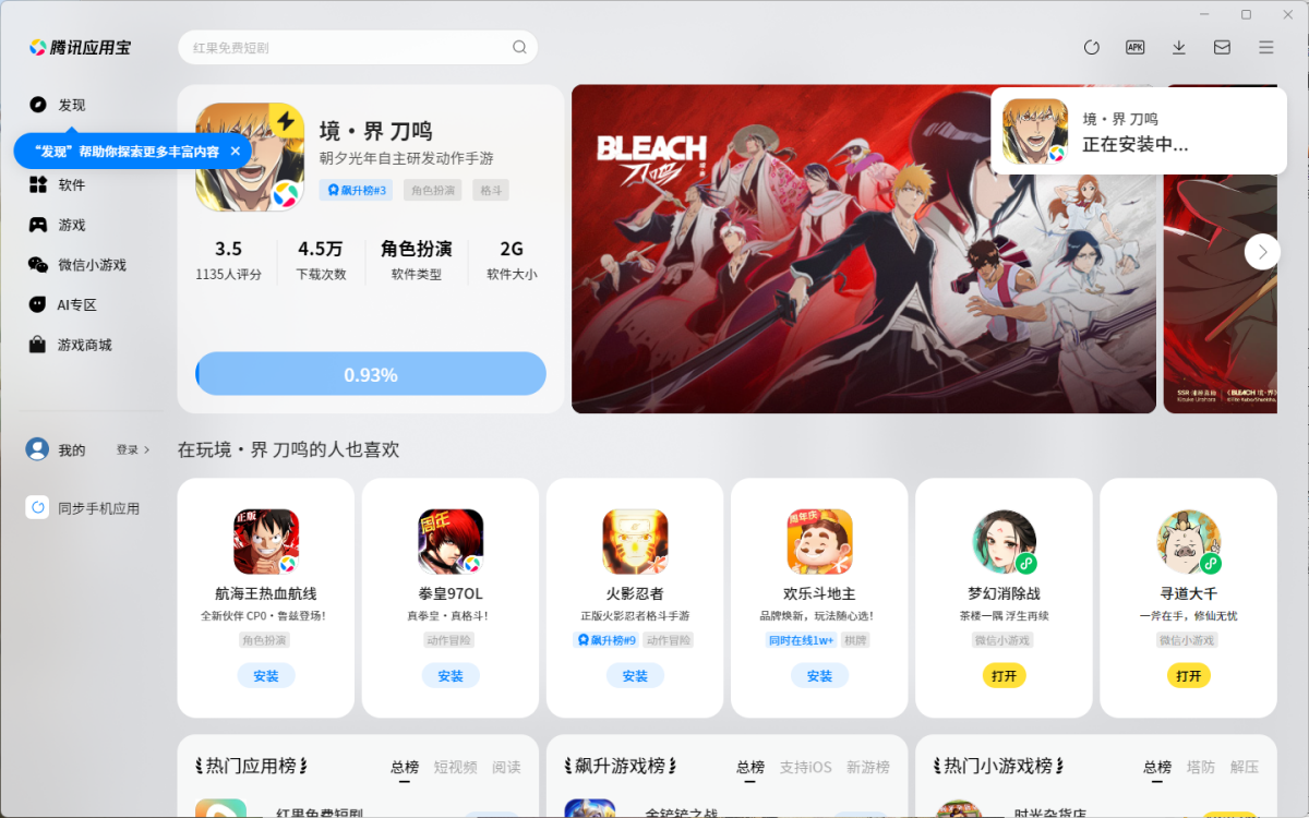 在极极下载站下载最新安装包,按提示先安装应用宝电脑版(已安装会直接调用打开,未安装应用宝时,手机APP无法独立在电脑上运行),应用宝启动后会下载安装游戏,待安装完成后即可开始畅玩。