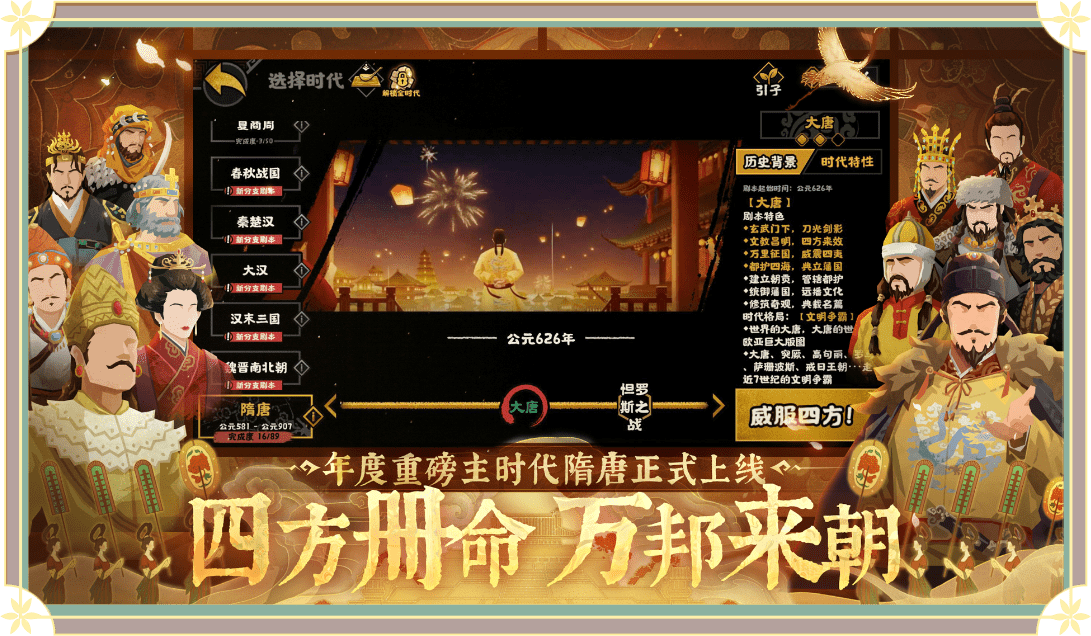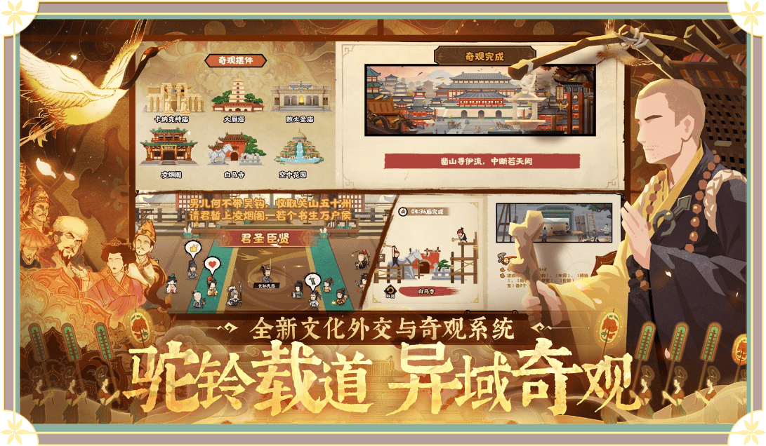 玩家可根据喜好选择不同时代剧本,进入所选历史时期扮演不同势力君主,建造产业内政外交。还可携手知名历史人物制定专属政策发展国力,一统天下或达成多样结局。