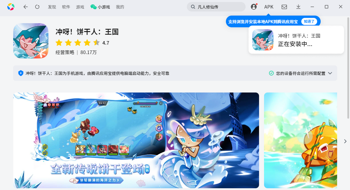 在极极下载站下载最新安装包,按提示先安装应用宝电脑版(已安装会直接调用打开,未安装应用宝时,手机APP无法独立在电脑上运行),应用宝启动后会下载安装游戏,待安装完成后即可开始畅玩。