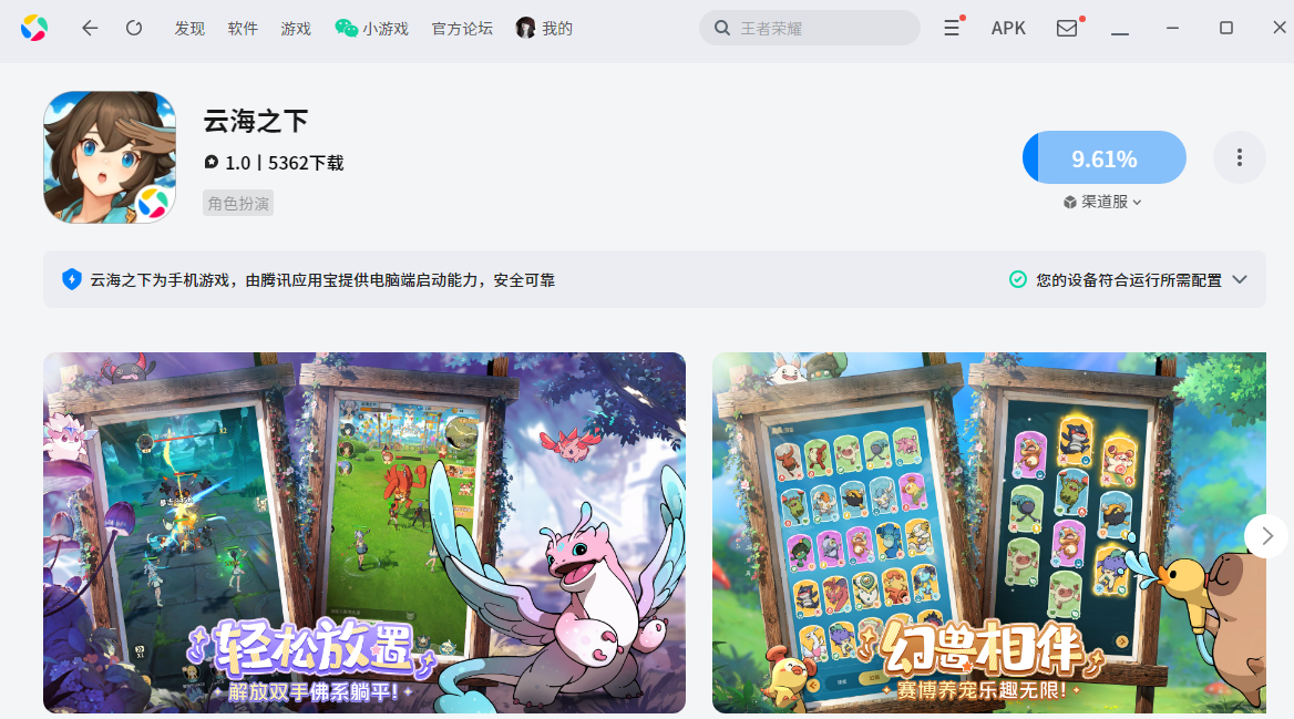 在极极下载站下载最新安装包,按提示安装应用宝(已安装会直接调用打开,未安装应用宝时,手机APP无法独立在电脑上运行),应用宝启动后会下载安装游戏,待安装完成后即可开始畅玩。
