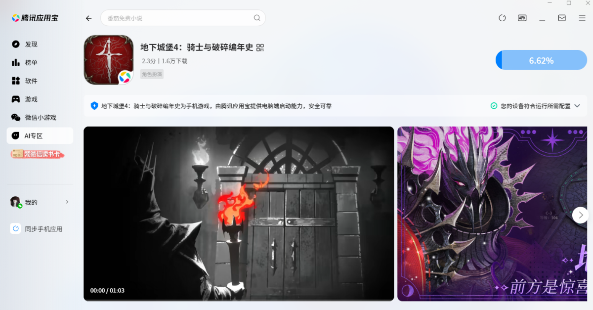 在极极下载站下载最新安装包,按提示安装应用宝(已安装会直接调用打开,未安装应用宝时,手机APP无法独立在电脑上运行),应用宝启动后会下载安装游戏,待安装完成后即可开始畅玩。