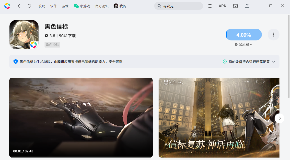 在极极下载站下载最新安装包,按提示安装应用宝(已安装会直接调用打开,未安装应用宝时,手机APP无法独立在电脑上运行),应用宝启动后会下载安装游戏,待安装完成后即可开始畅玩。