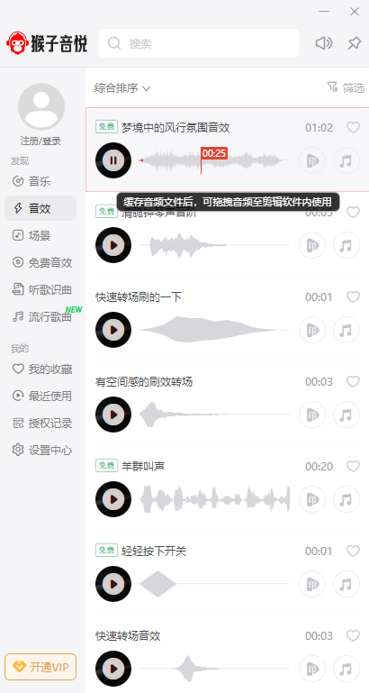 猴子音悦Mac版是一个原创版权商用音乐授权购买软件,支持一键拖拽音乐至编辑软件中使用,免除音乐下载导入的繁琐,版权好音乐,尽在猴子音悦!