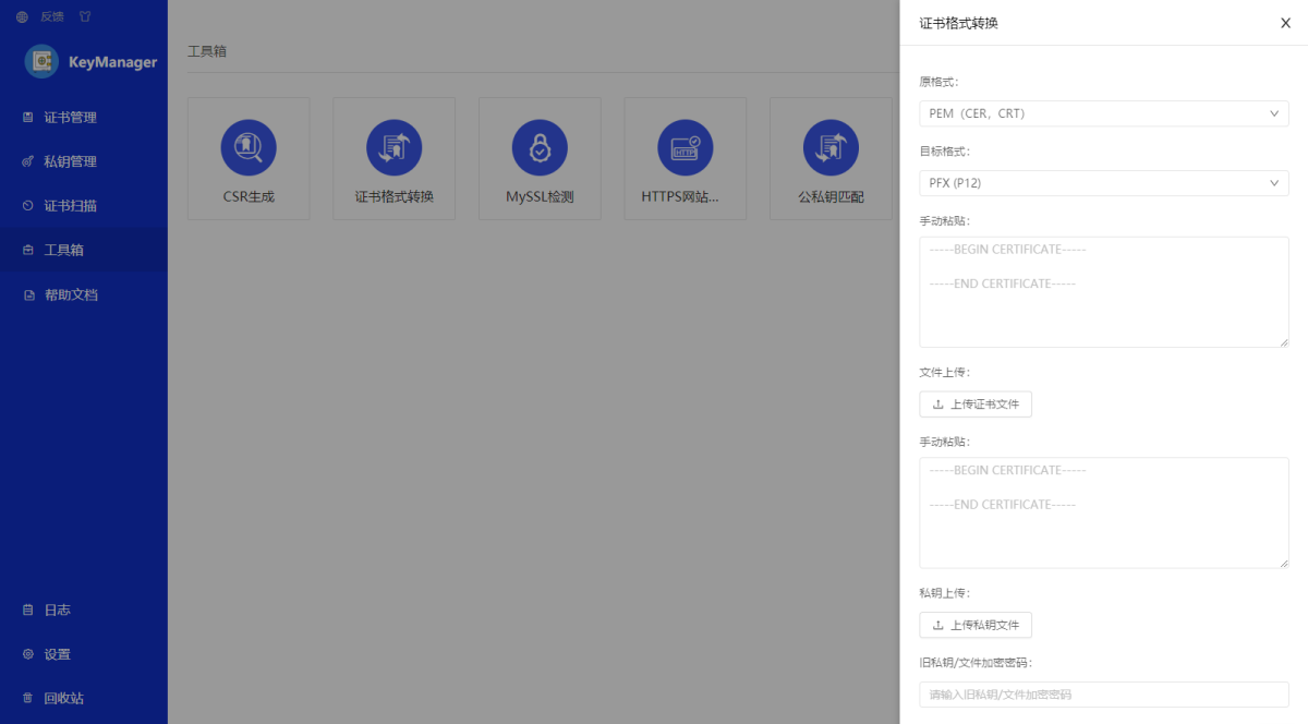 支持多种证书格式导入、导出功能,查看完整的证书信息。