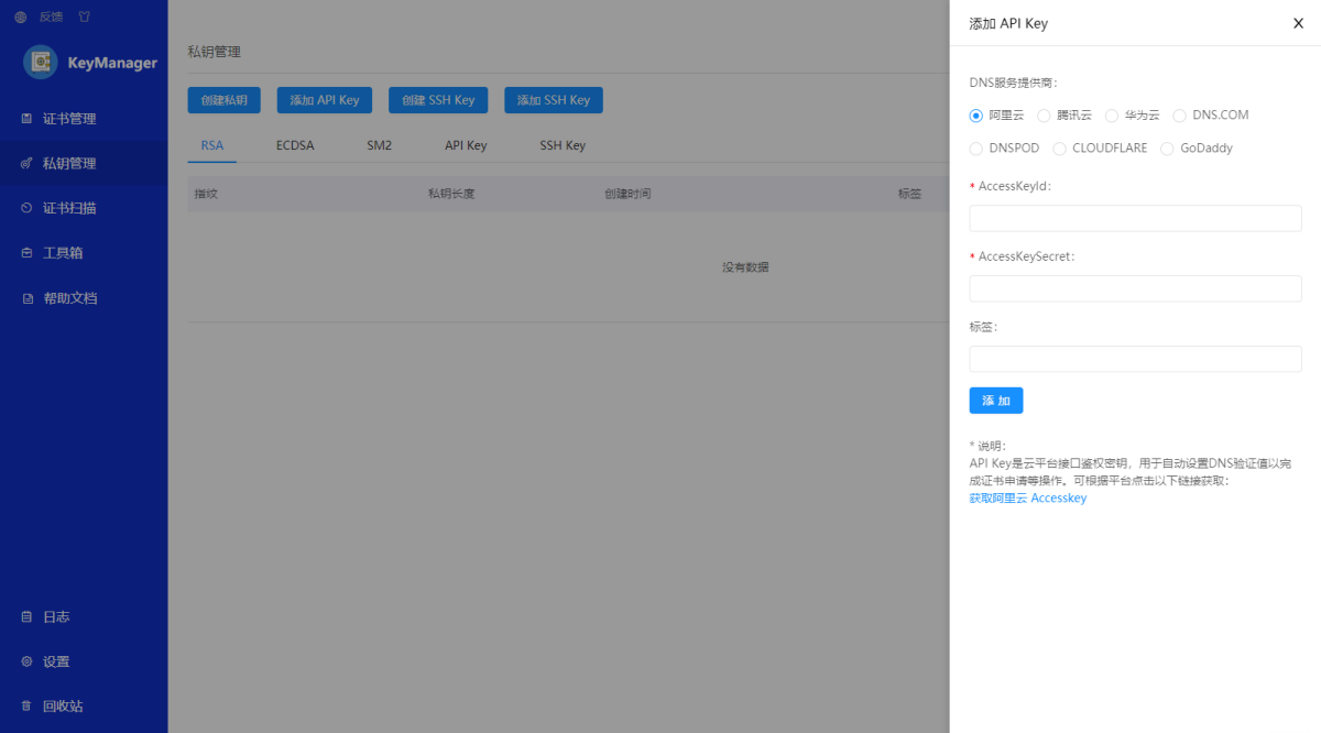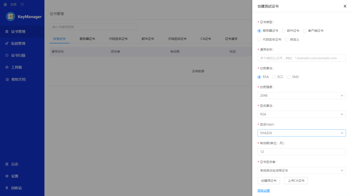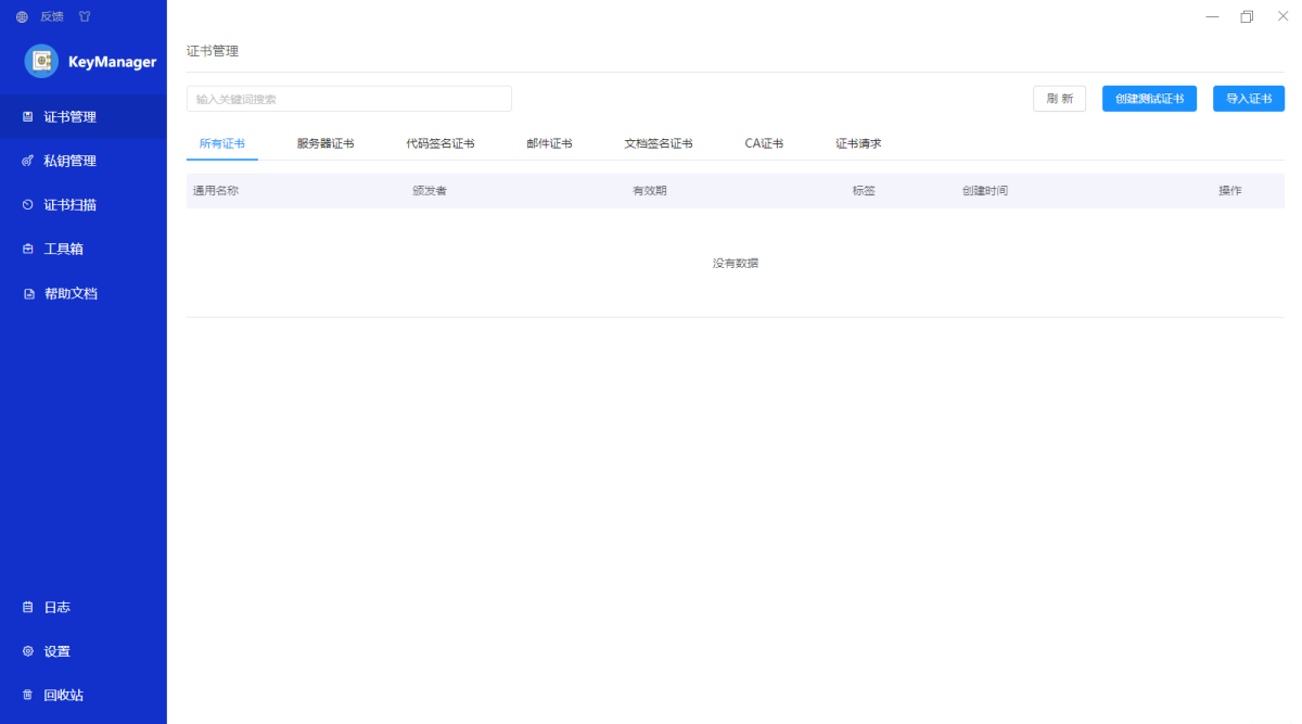 KeyManager是集证书申请、证书管理、私钥管理、证书到期提醒、一键部署等为一体的证书管理工具。