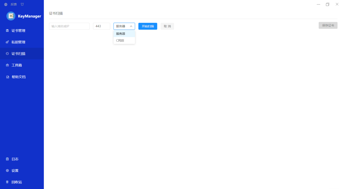 扫描网站并管理所有发现的证书。