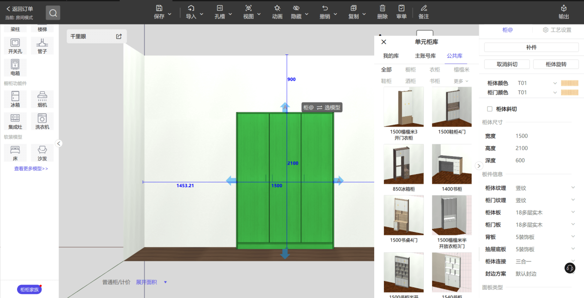 柜柜拥有极为丰富的柜子相关组件与模型库,涵盖了各种风格和类型的柜体元素。无论是现代简约的拉手、独具特色的造型板件,还是实用多样的功能配件,应有尽有。用户可以轻松从中挑选心仪的元素,为自己的柜体设计注入无限创意和个性。无论是卧室衣柜、客厅橱柜、厨房吊柜还是书房书柜的设计,都能在这个庞大的库中找到所需,满足多样化的柜体设计需求。