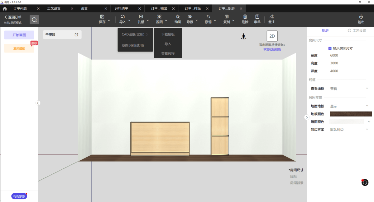 柜柜配备了先进的智能审单功能,能够自动对设计方案进行全面且细致的审查。通过智能算法和精确的数据分析,快速准确地识别可能存在的错误和疏漏,如尺寸不符、结构不合理等问题。大大减少了人为疏忽导致的错误,有效提高了设计的准确性和可行性,为后续的生产环节提供了可靠的保障,节省了时间和成本,让家具设计生产过程更加顺畅高效。