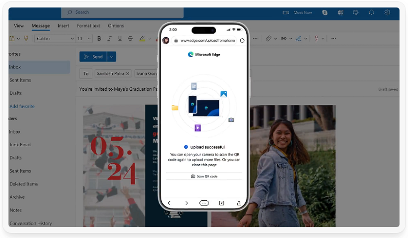 使用MicrosoftEdge,您可以通过移动上传将文件从移动设备无缝发送到PC上的网站。当您单击页面上的文件上传按钮时,您可以选择“从移动设备上传”,这将允许您从PC上的文件资源管理器将文件从移动设备直接传输到网站。