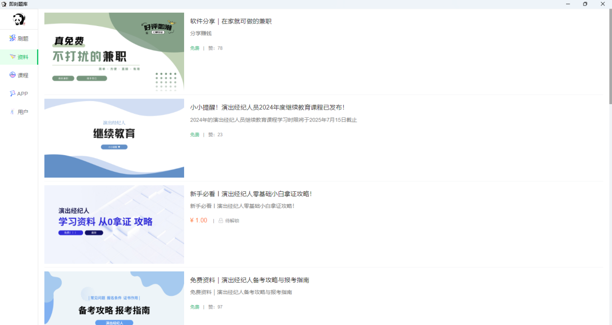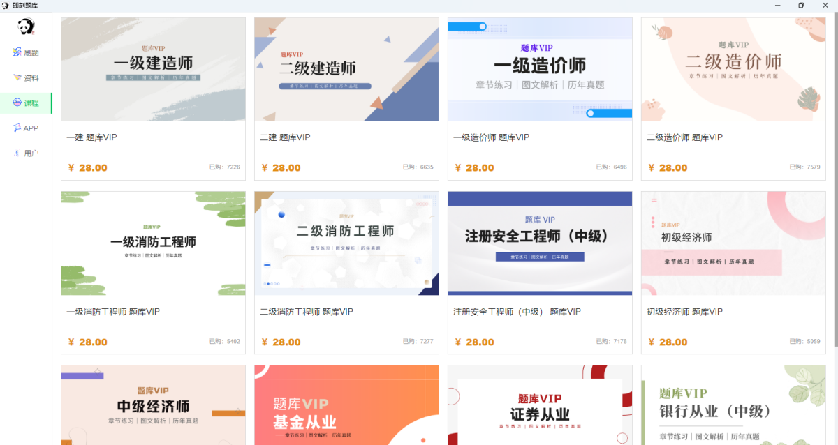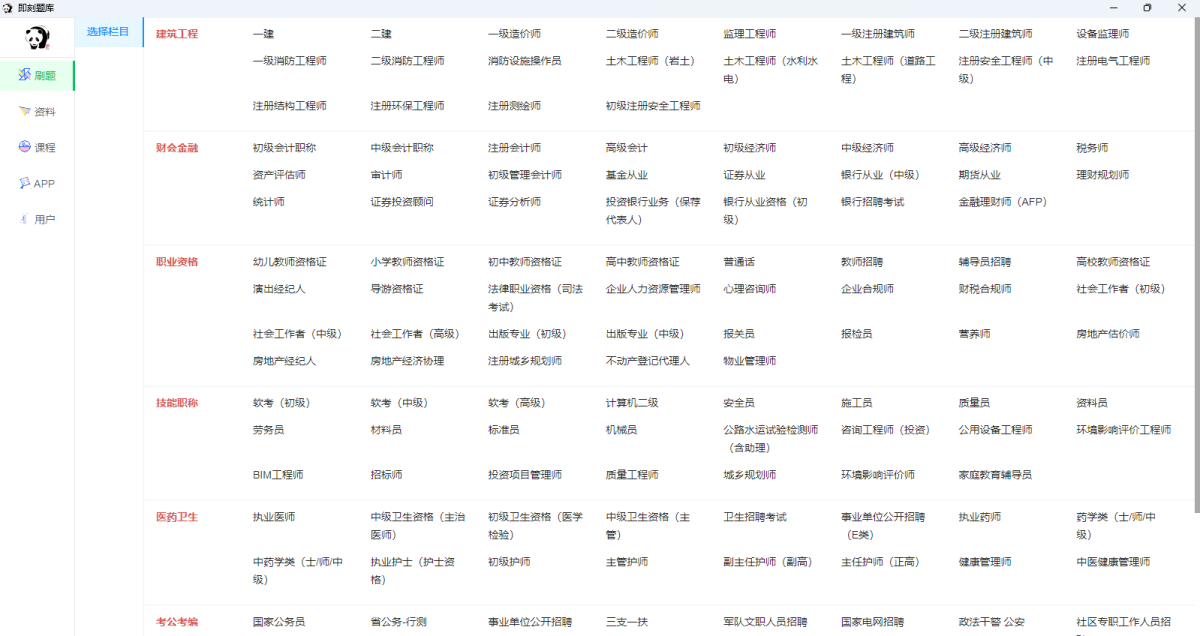 即刻题库是一款功能齐全的做题刷题系统,按最新考纲编辑,有配套的章节习题,历年真题,预测模拟题,适合备考执业考试的小伙伴们。软件包含:一建、二建、教师资格证、注册安全工程师、经济师、演出经纪人、导游证、职业护士,职业药师、银行从业、社会工作者等近千个热门科目。
