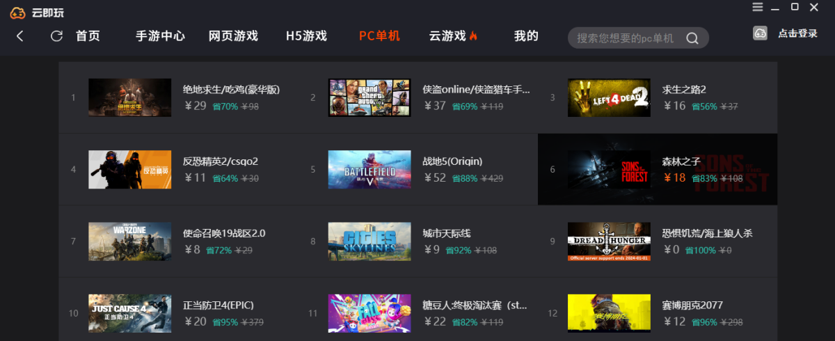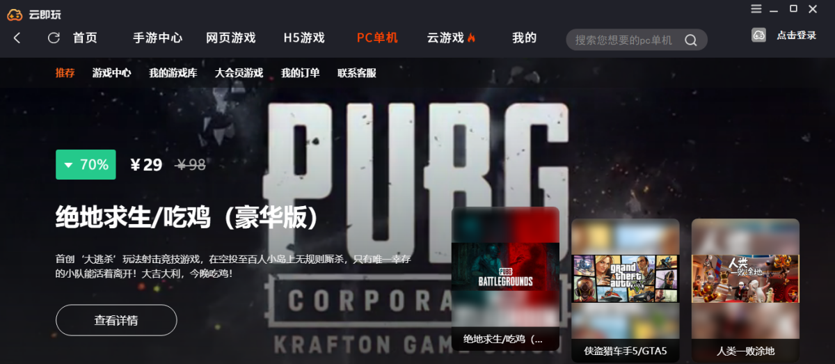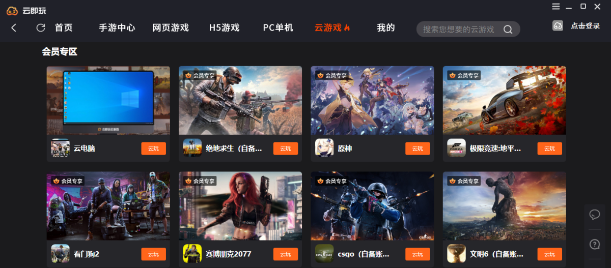 云即玩模拟器,实现低配置电脑可玩高配大型端游大作,随时随地即点即玩,帮助Steam平台玩家用户购买游戏,聚合游戏陪玩,游戏直播,游戏租号等玩家互动娱乐。