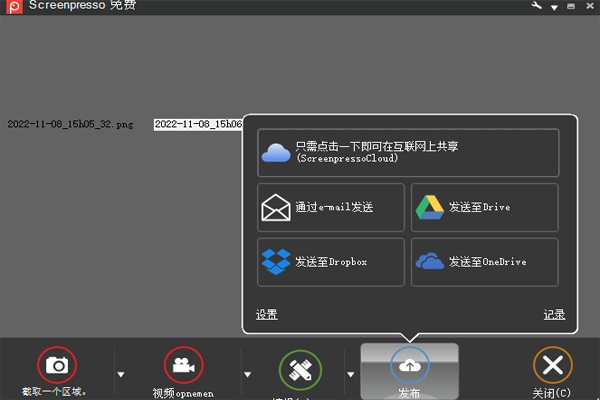 Screenpresso可以替代Windows自带的截屏工具,同时并添加了一定的功能。在键盘上按下 print键,然后在屏幕上拖出一个矩形框,就可以把这一部分截取下来。如果同时按下Ctrl键时,将会截取整个屏幕的截图,按下Ctrl+Shift+Print便会截取滚动的窗口。