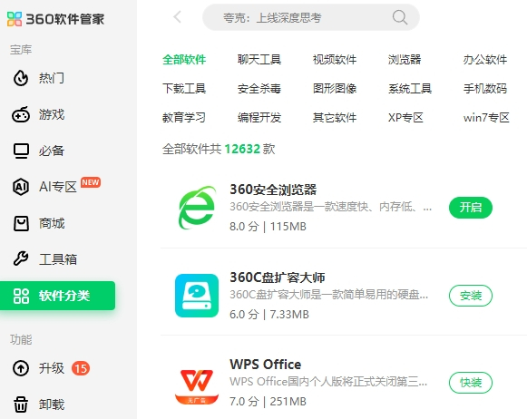 360软件管家-全网无捆绑软件 管理、升级一应俱全