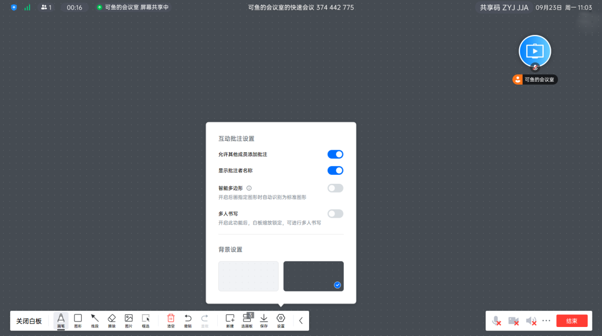 批注、白板入口优化:会中沉浸态下,白板、批注入口支持常驻状态。