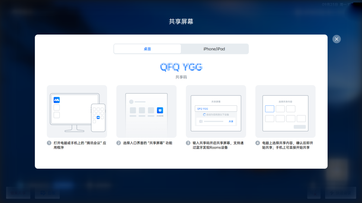 支持副屏显示共享码和会议室信息。