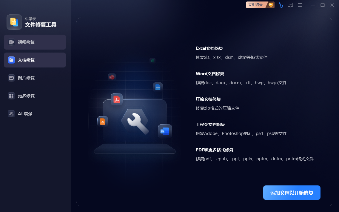 文档损坏在日常生活中经常发生。这可能会影响到您的生活或者工作,文件修复工具是一个强大的修复工具,可用于修复Excel、Word、PowerPoint、PS、PDF、Zip、Rar等各类文档。