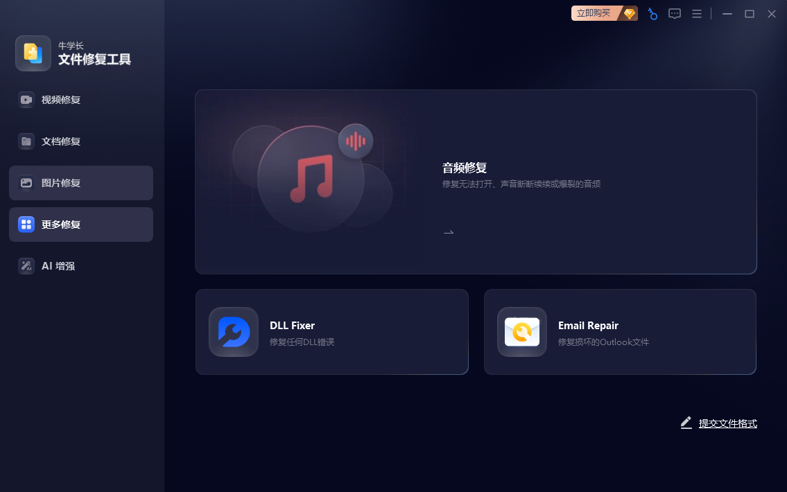 牛学长文件修复工具是一款可修复损坏视频/图片/音频/文件的修复软件,只需简单三步,即可快速修复损坏图片/视频/音频/文件,支持修复MOV,MP4,M4V,MKV,jpg,jpeg,arw,cr2,erf等多种视频/图片/音频/文件格式,成功率更高!
