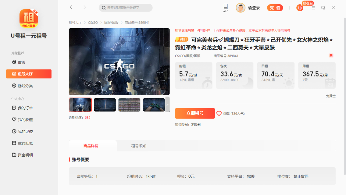 U号租是一个专业的游戏租号平台,为玩家提供覆盖了端游、手游等高级账号。有了U号租,您可以轻松实现:王者荣耀租号、和平精英租号、CF租号、英雄联盟LOL租号和绝地求生租号等,高端帐号即时体验!现在下单,单单都返奖励金。邀请新人更有额外奖励。