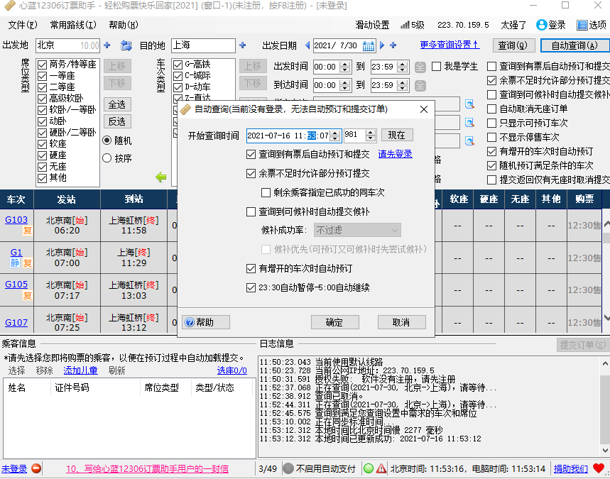 抢预售票时,建议在自动查询窗口中打上自动候补,防止抢票失败可以第一时间登记候补最快兑现。