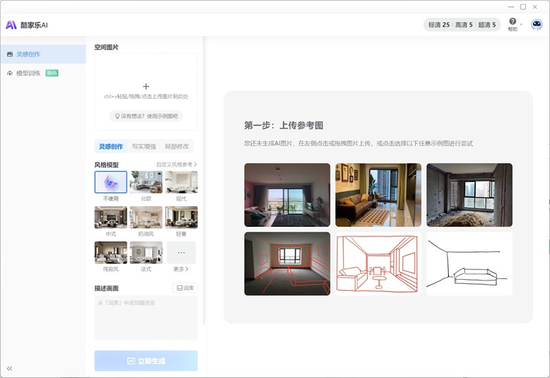 酷家乐智能效果图设计软件是依托于酷家乐海量优秀设计方案,通过智能算法实现方案的自动设计应用,帮助用户快速完成方案设计,提供设计灵感,大大提高设计效率。