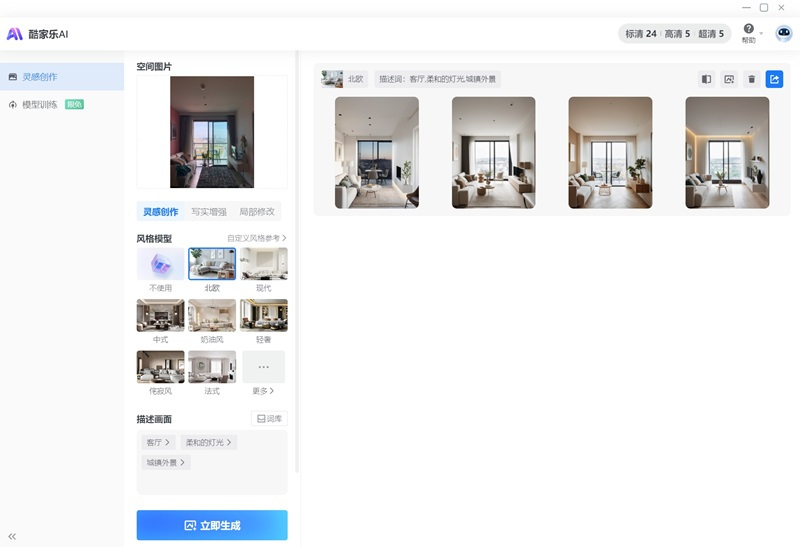 酷家乐效果图设计软件是一款室内家居自动设计搭配软件,AI辅助方案设计,操作0门槛,直接搜索任意户型,一键应用样板间,简单智能,10秒出方案,支持渲染720°全屋漫游图,给你沉浸式的效果体验。