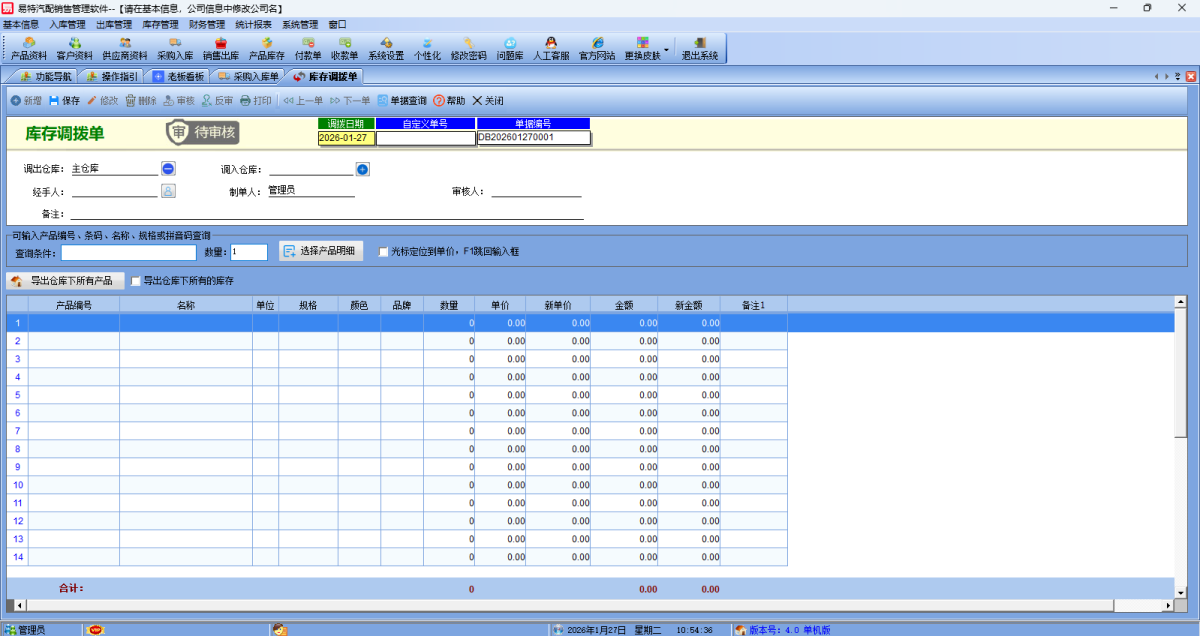 易特汽配销售管理软件是一款专业的汽车配件销售管理软件,其中包含商品销售管理系统,库存管理系统(仓库管理系统),财务和报表系统等子模块。软件界面设计简洁,美观,其人性化的软件流程,使普通用户不需培训也能很快掌握软件操作使用方法,上手极易。强大报表与集成查询功能是本软件的最大特色,所有功能在用户需要的使用地方自然体现,不用打开多个窗口重复查询。易特进销存软件广泛适用于企业,商贸公司,个体门店等用于商业销售管理, 库存管理,财务管理等,客户管理,员工管理等场合,是企业进行信息化管理的强大工具。
