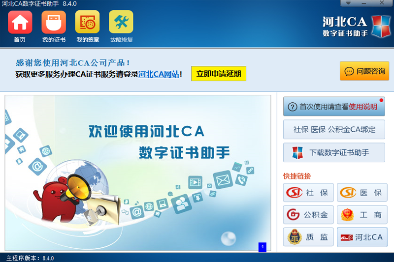 * 先下载360安全卫士,经检测安装河北CA数字证书助手