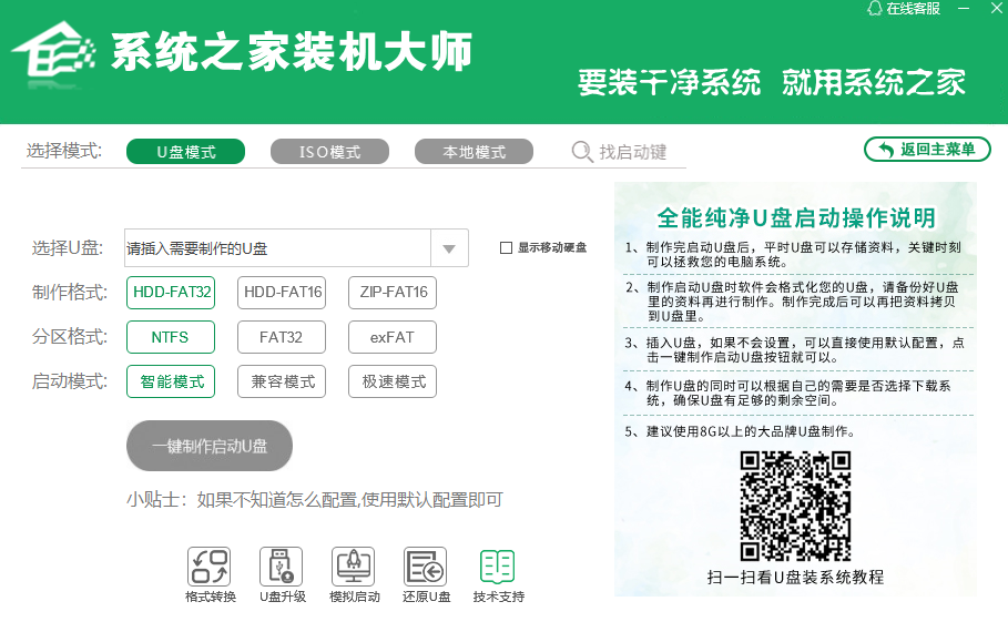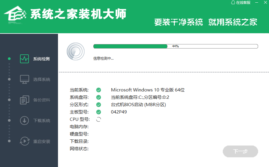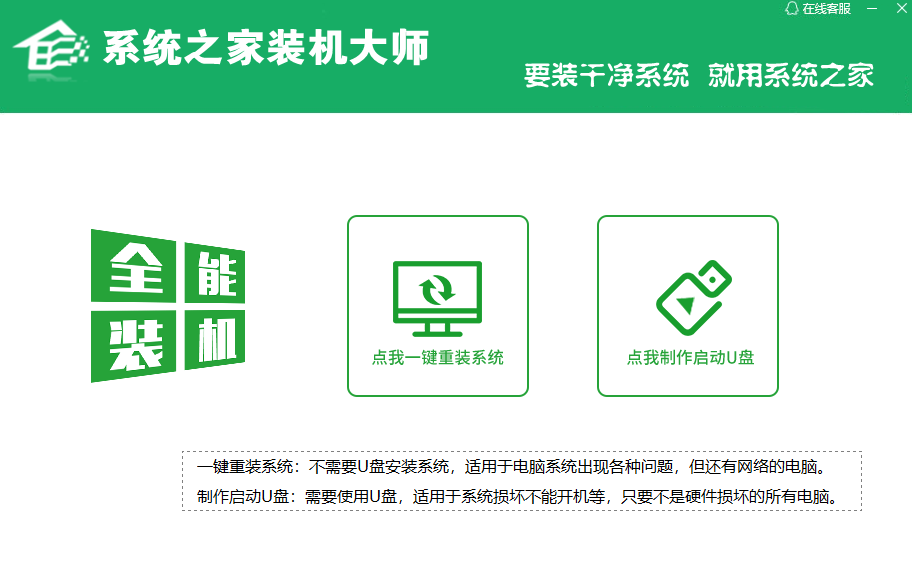 系统之家装机大师是一款全新的一键重装系统工具,使用无需安装,即使无任何电脑基础也能快速重装系统。告别繁琐,简单易用,不需要任何技术基础,傻瓜式一键重装,全自动完成,完全不需要光驱和光盘,是小白必备的重装神器;安全高效,性能稳定,不黑屏、不蓝屏,无病毒,无死机,绝对安全、可靠、稳定、快速;智能装驱动,全面兼容,集成国内最全驱动库,精准识别硬件设备;智能检测、自动安装、设备即时生效;飞速下载,快速安装,采用智能云模式和迅雷7内核,实现了系统的快速下载,完美的Ghost技术,实现了系统的快速安装;系统随意换,一机多系统 完美支持XP/Win7 32位/Win7 64位/Win8 32位/Win8 64位/win10系统互相转换,安装系统更加简单便捷。