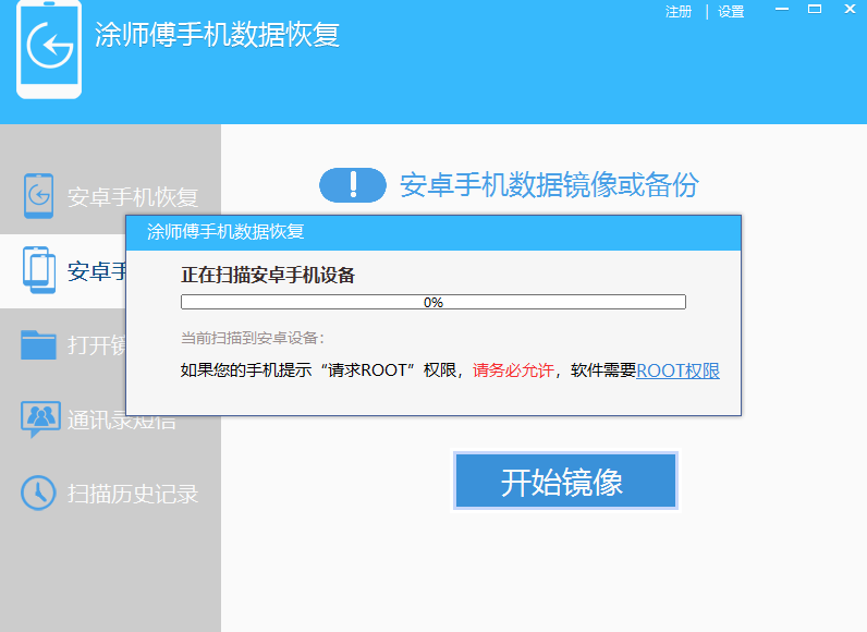 涂师傅手机数据恢复软件官方版是一款功能强大的数据恢复软件,涂师傅手机数据恢复软件官方版能够恢复安卓手机数据,软件件支持照片恢复、图片恢复、视频恢复、音频恢复、等诸多功能,软件需要ROOT权限,并连入电脑,需要的朋友欢迎下载使用。