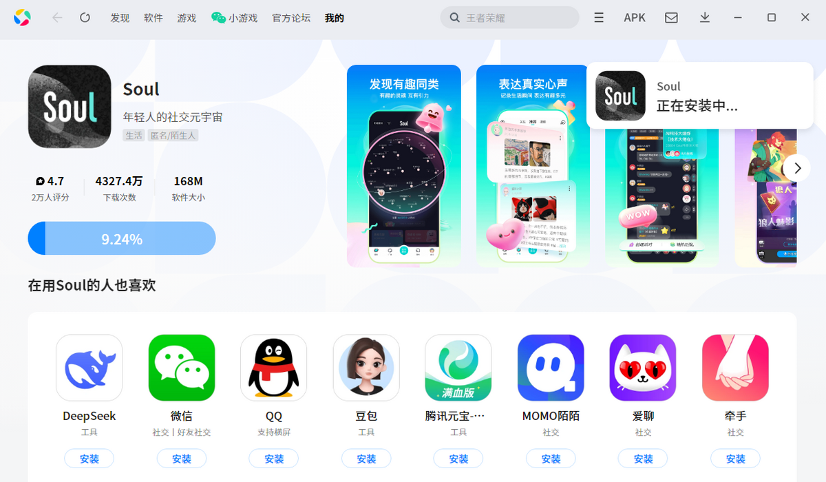在极极下载站下载最新安装包,按提示安装应用宝(已安装会直接调用打开,未安装应用宝时,手机APP无法独立在电脑上运行),应用宝安装完成后,进入应用宝,继续等待软件安装,完成之后登录账户即可开始使用