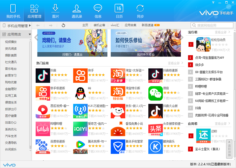 vivo手机助手是一款在电脑上使用的工具,它用于帮助用户管理vivo智能手机资料、制作主题及下载手机应用等。它的目的是使用户的手机和电脑变成一体的,发挥电脑的屏大、速度快、易操作等优势,让你的手机更好用。使用时,仅需要用USB线将手机与电脑连接,在电脑上运行vivo手机助手,即可不断发现惊喜。