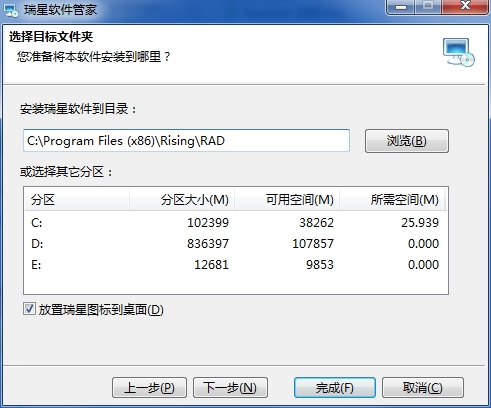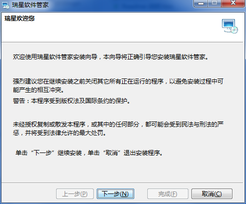 2.按照瑞星安装向导提示进行安装。