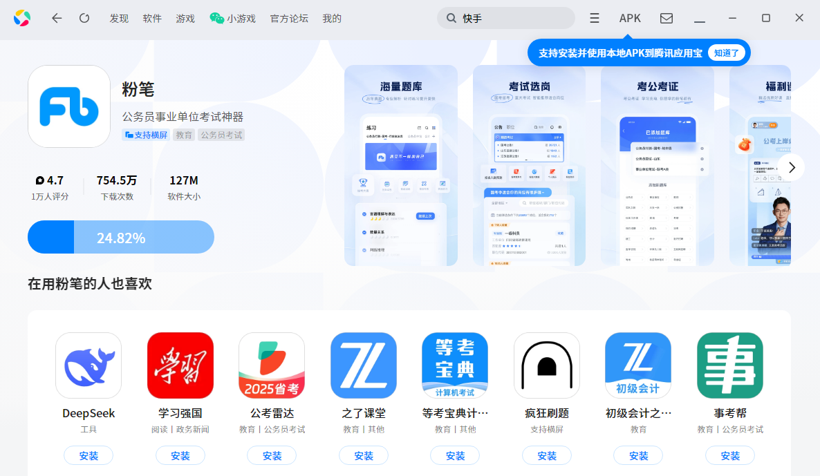 * 先下载金山毒霸,再通过软件管家安装粉笔应用电脑版