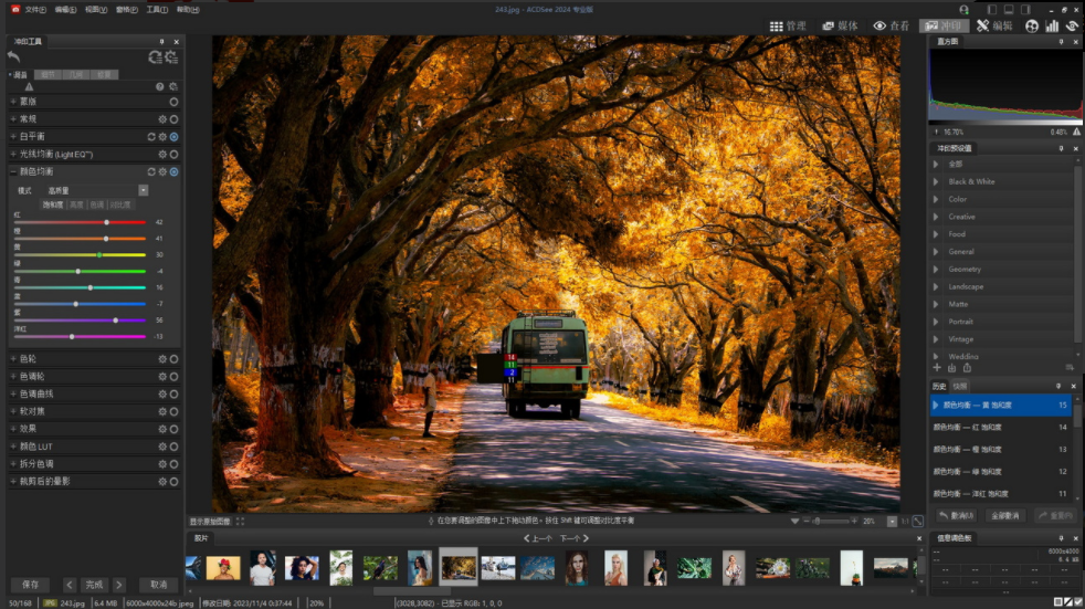 ACDSee专业版是专为摄影师打造的图片管理和编辑工具。支持RAW格式读取,可以进行大量图片的批量处理工作,人脸识别功能减去了你手动分类人物照片的麻烦,省时省力。让你更高效的进行图片管理与编辑工作。使用ACDSee专业版2024制作相册,让您自豪地与他人分享。先进的 RAW 图像编辑和数字资产管理工具搭配业界领先的人工智能 (AI) 功能,可显著增强您的摄影工作流程。
