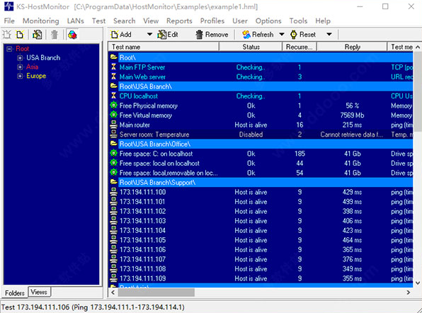 HostMonitor是一个网络监测工具,能够定时地监视Server主机的TCP、Port服务是否正常运作,URL是否存在、硬盘空间,当这些服务没有正常运作时,便会以警铃、Email错误信息、启动指定程序等的方式通知使用者,方便你在引起网友的抱怨前将问题处理掉。
