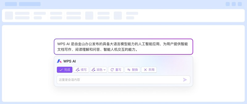 WPS AI,你的AI办公助手。解锁AI帮我写文档、AI生成PPT、AI数据助手、AI阅读助手等AI能力,让WPS AI为你提供更加智能、高效的办公体验。