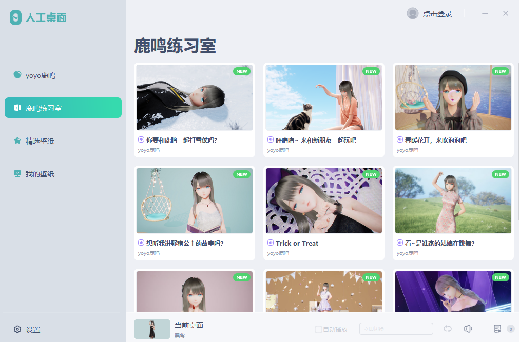 人工桌面是米哈游旗下的动态桌面壁纸软件,一键点击唤醒鹿鸣,感受丰富的动态壁纸和沉浸式的视觉体验。